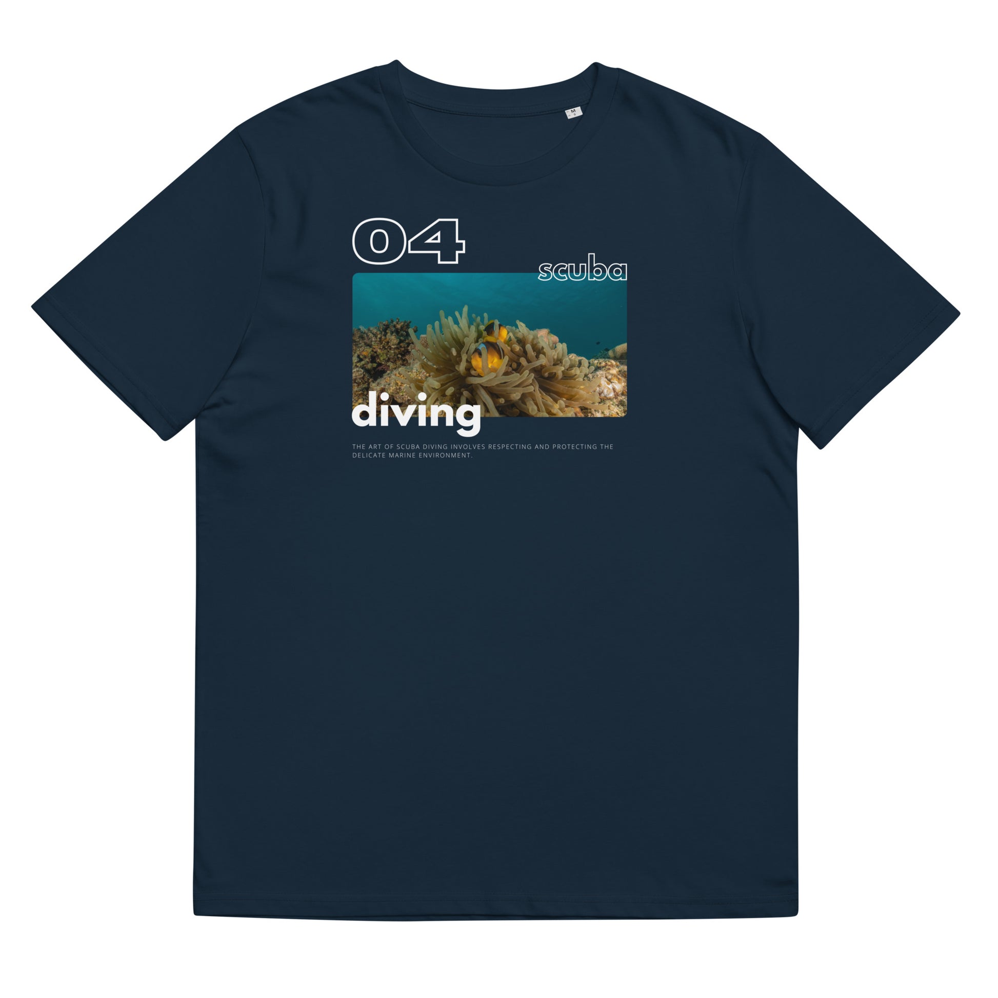 El arte del buceo implica la defensa del ecosistema marino, tanto durante la inmersión como fuera del agua. ¿Se puede definir el arte del buceo? ¿Qué significa para ti el submarinismo? Número 04 de nuestra serie limitada de camisetas para buceadores el "Arte del buceo". Está fabricada en algodón 100% orgánico.